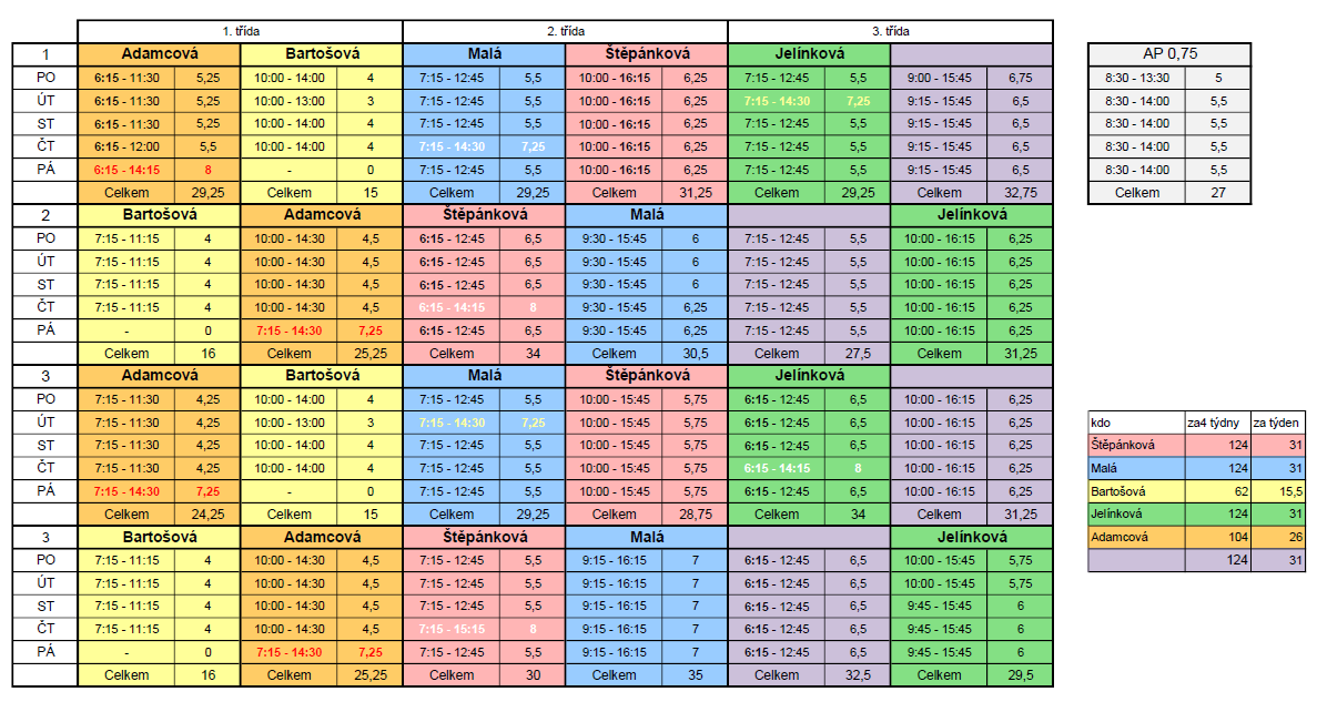- začínáme v 1. třídě jako teď v 6:15 - 7:15 přechod do svých tříd