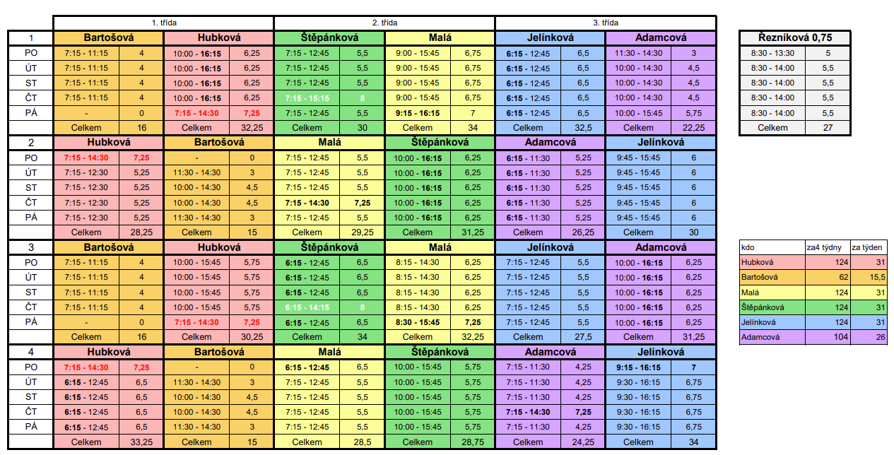 - končíme v 1. třídě jako teď v 15:45 - 16:15
