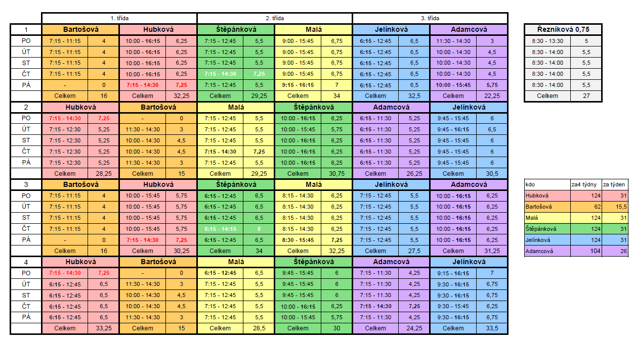 - Evička zkrácený úvazek + pátek/pondělí není v práci vůbec